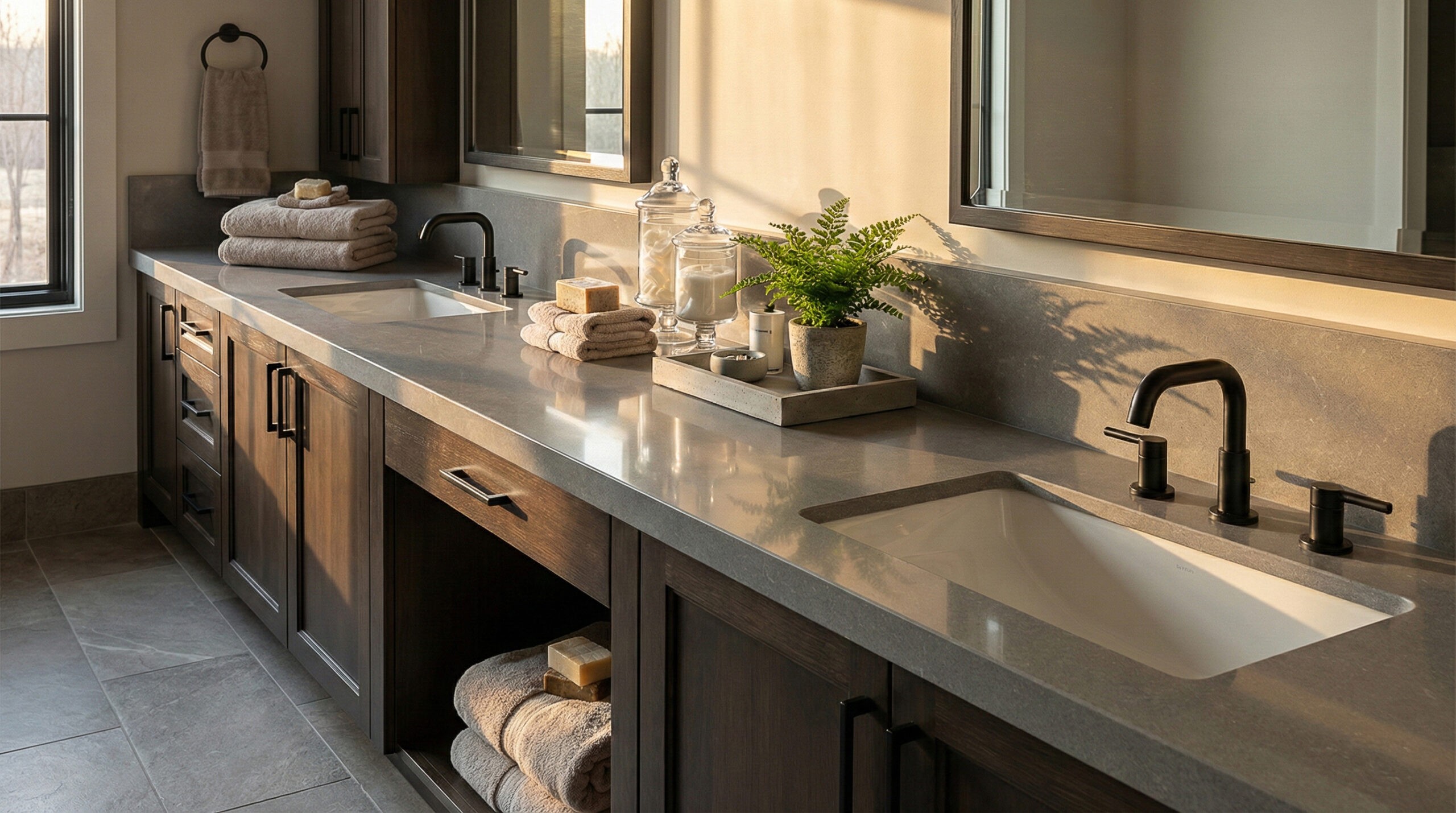 Dallas Silver presents a sophisticated, mid-to-deep gray base with a smooth and understated aesthetic. The surface is subtly detailed with faint, barely-there white wisps and delicate tonal mottling, resembling the quiet elegance of fine concrete or honed slate. This refined, minimalistic pattern offers gentle depth without stark contrast, maintaining a sleek and cohesive monochromatic look. Modern and versatile, Dallas Silver is an excellent choice for contemporary, urban, and transitional interiors, providing a grounded, neutral foundation for countertops, islands, and architectural features where a cool, serene character is desired.