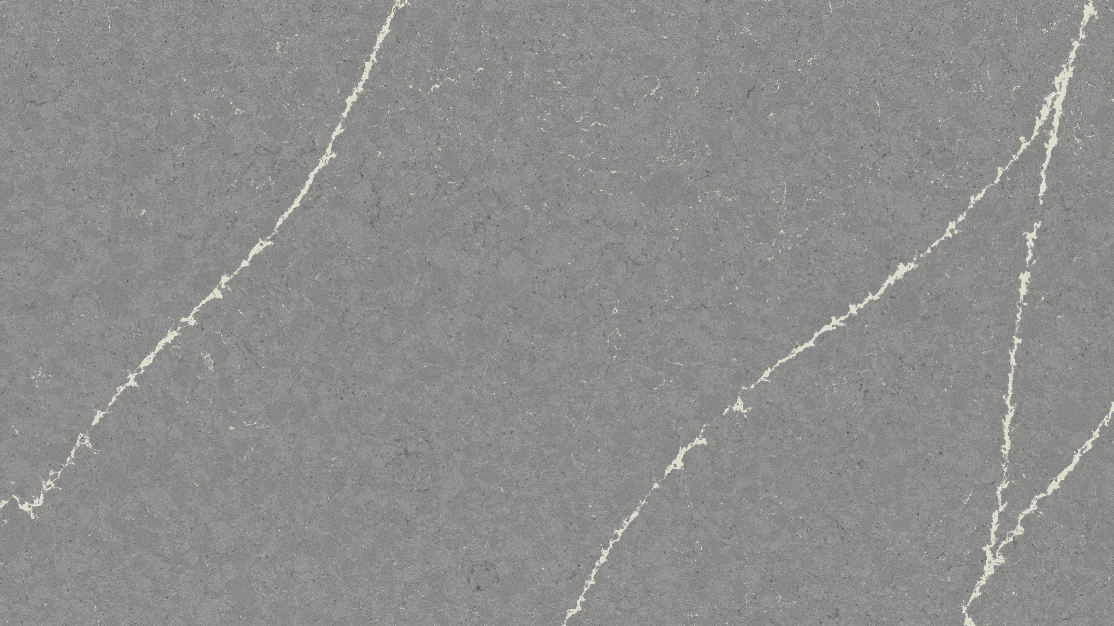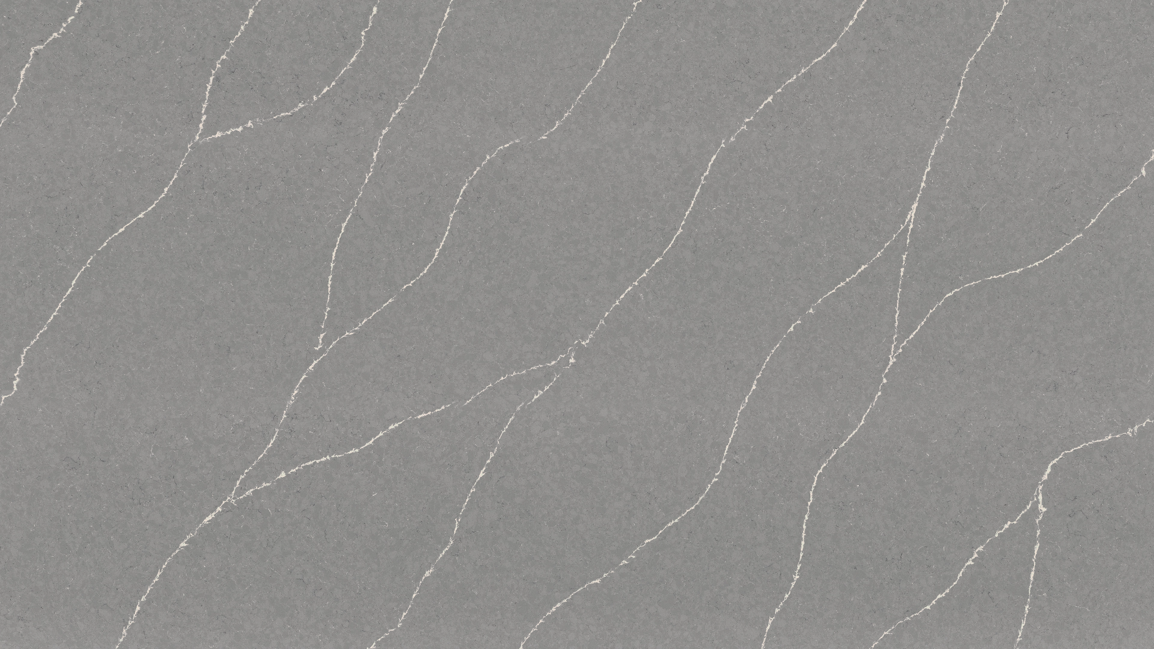 Hill Country presents a robust, medium-gray base with a rugged and earthy aesthetic. The surface is dramatically defined by sharp, striking white veins that cut across the slab like lightning bolts or natural fissures, creating a bold, directional movement. This intense veining contrasts with the mottled, granular texture of the background, which mimics the raw appeal of aged concrete or natural soapstone. Strong and grounding, Hill Country is an ideal choice for modern farmhouse, industrial, and rustic interiors, serving as a powerful centerpiece for islands, countertops, and fireplace surrounds where a durable, authentic presence is desired.
