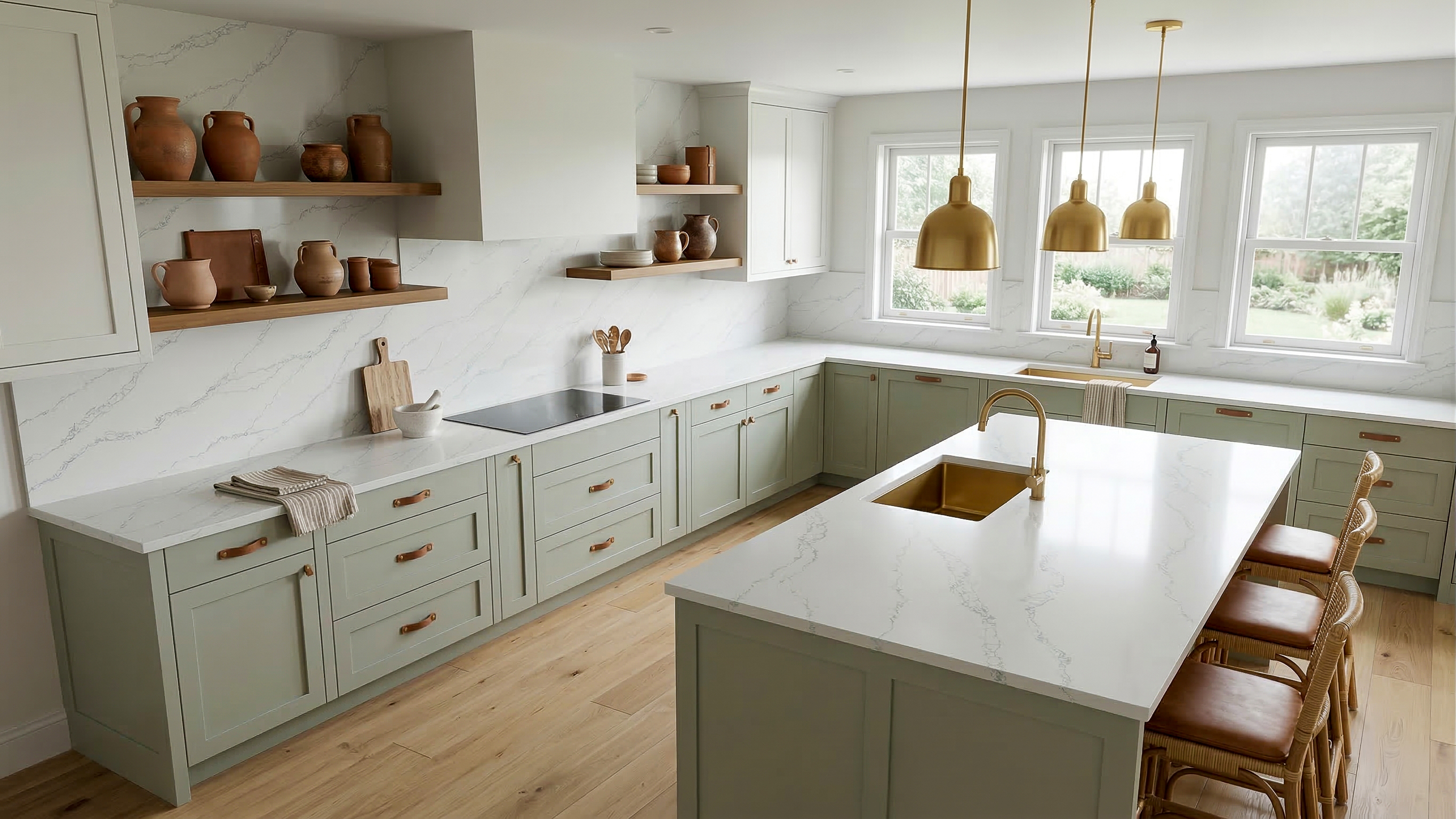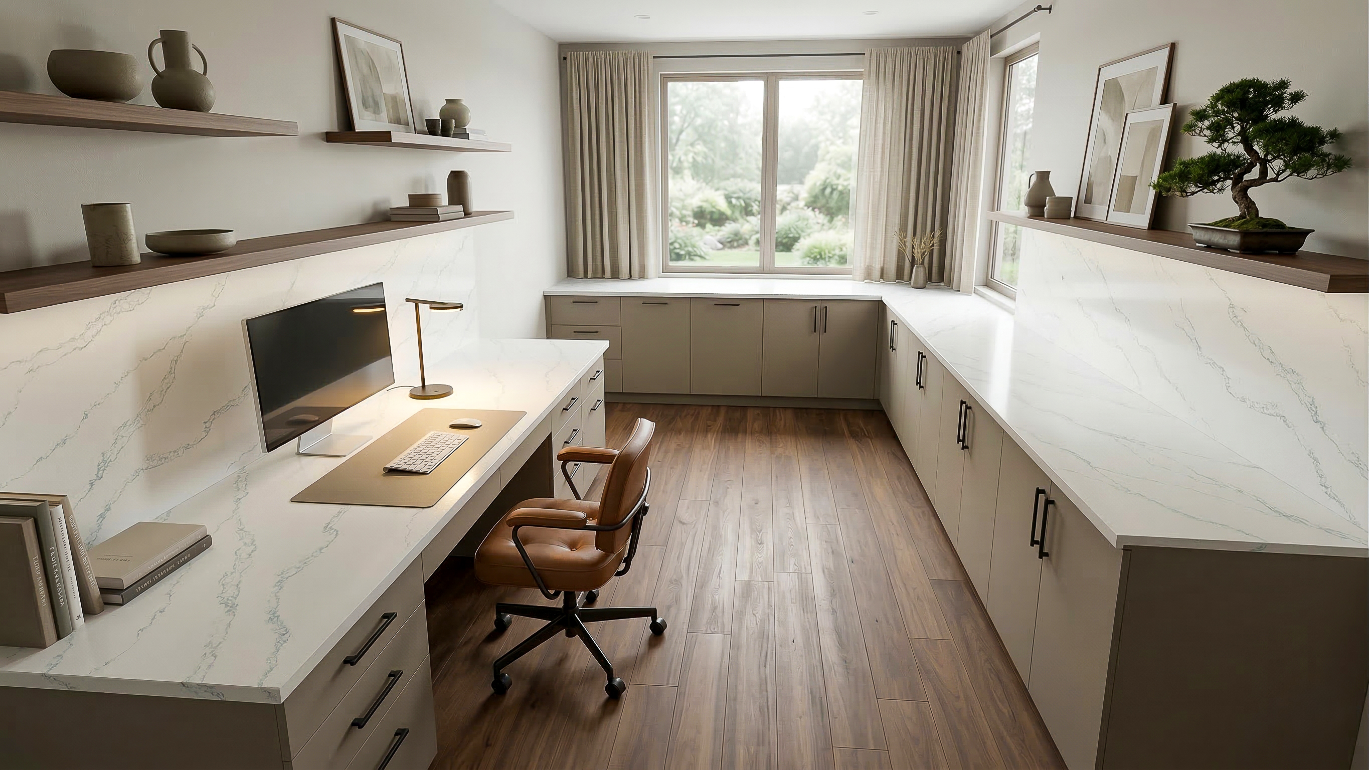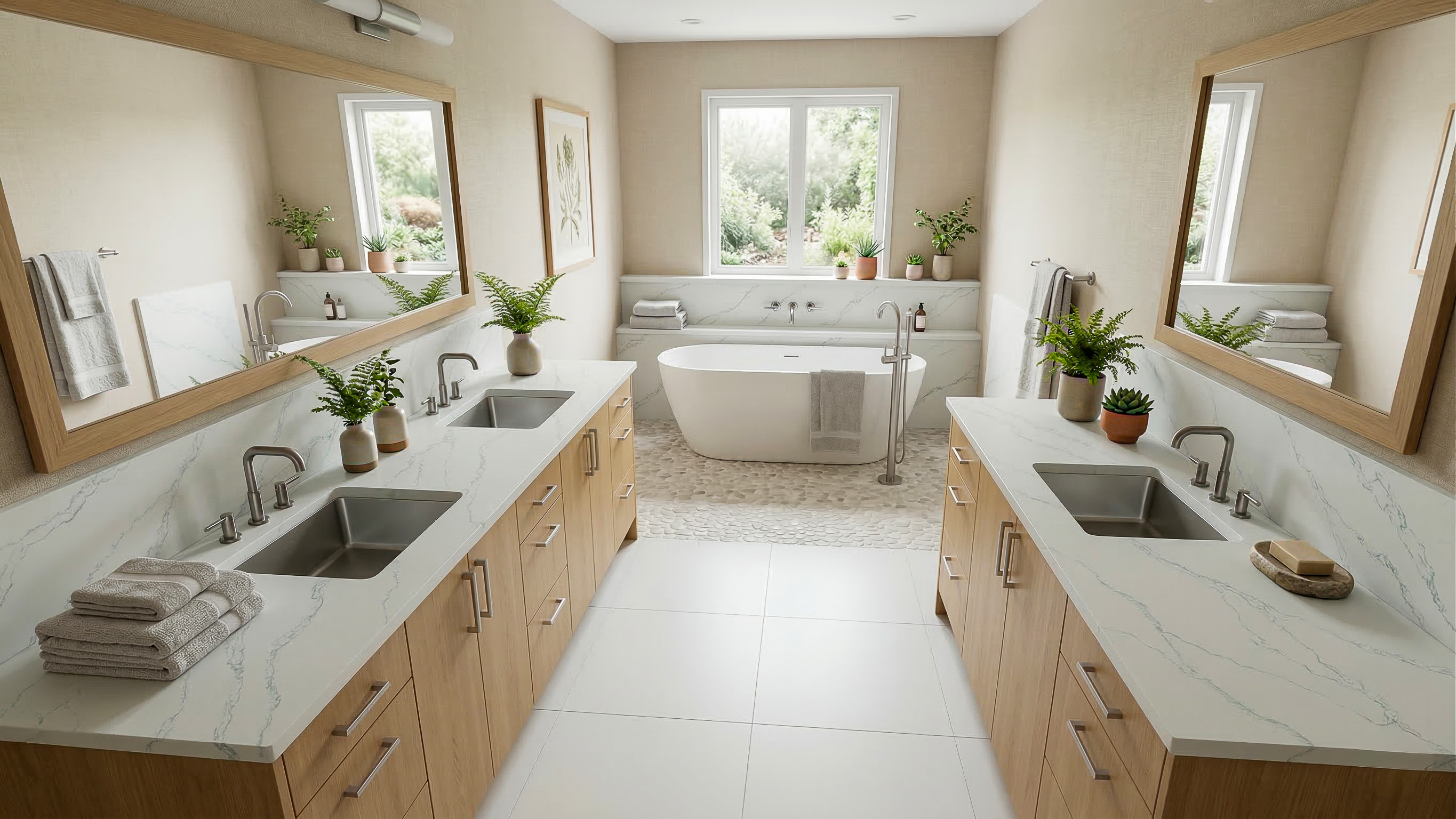 Arabescato Neptune captures the serene allure of rare sea-green marble, rendered in the enduring quality of premium quartz. Its soft, white ground is kissed by delicate teal-veined currents that drift across the surface in long, sweeping arcs — evoking the tranquil depths of Mediterranean waters. As breathtaking on a kitchen countertop as it is in a spa-like shower surround or a refined vanity setting, Arabescato Neptune brings a rare, collected sensibility to any interior. Engineered to stand up to the demands of everyday living, it offers the same effortless elegance year after year — no sealing, no etching, no compromise.