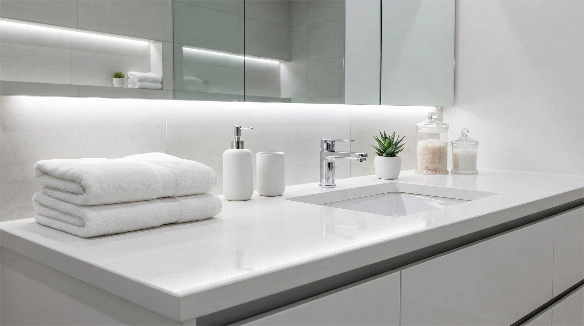 Marble Falls features a pristine, brilliant white base with a crisp and airy aesthetic. The surface is defined by its clean, monochromatic appearance, virtually free of visible veining or heavy speckling, creating a seamless and polished look. This pure, luminous quality maximizes light and offers a sense of modern simplicity and calm. Sophisticated and versatile, Marble Falls is a definitive choice for contemporary and minimalist interiors, serving as an ideal canvas for countertops, islands, and architectural elements where a sleek, unblemished foundation is paramount.