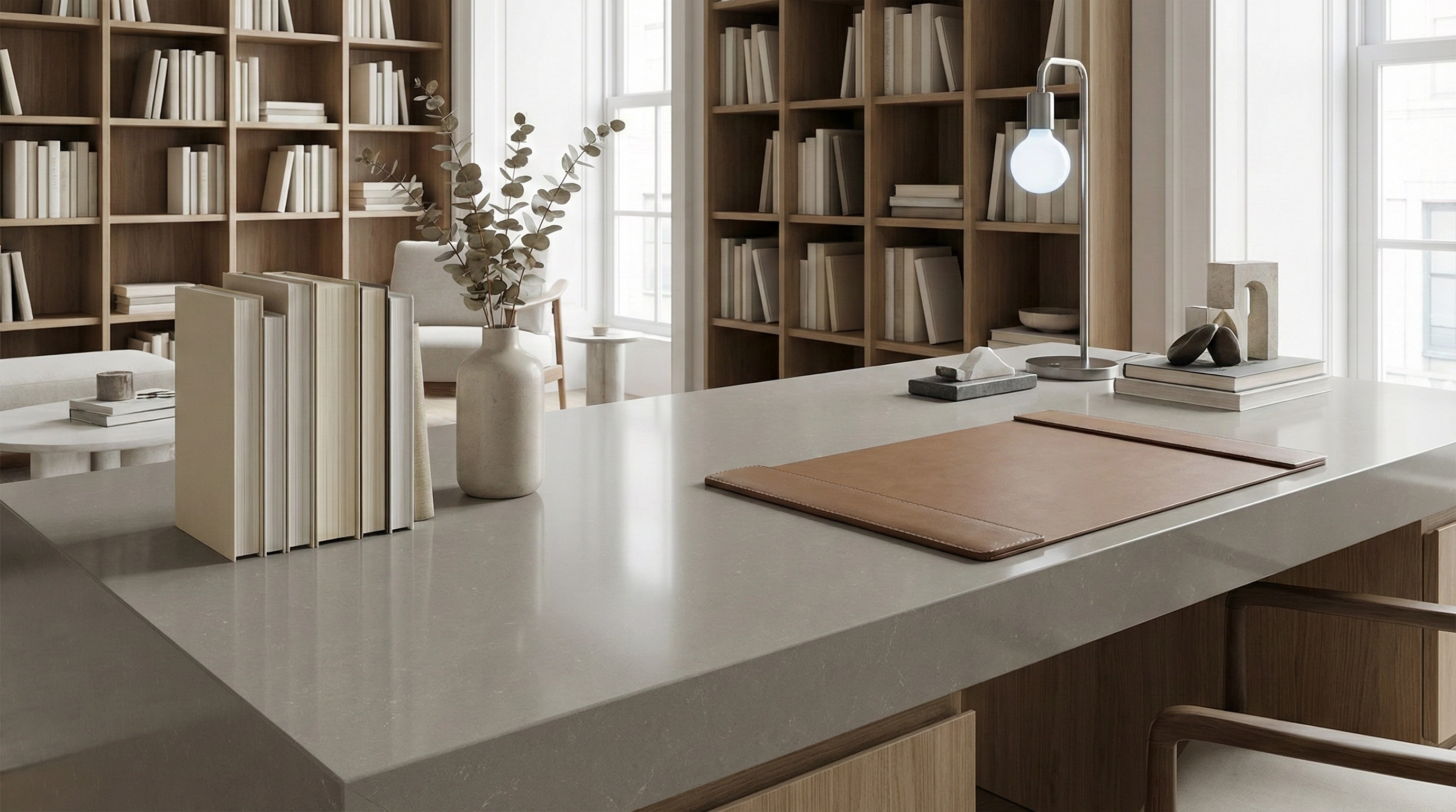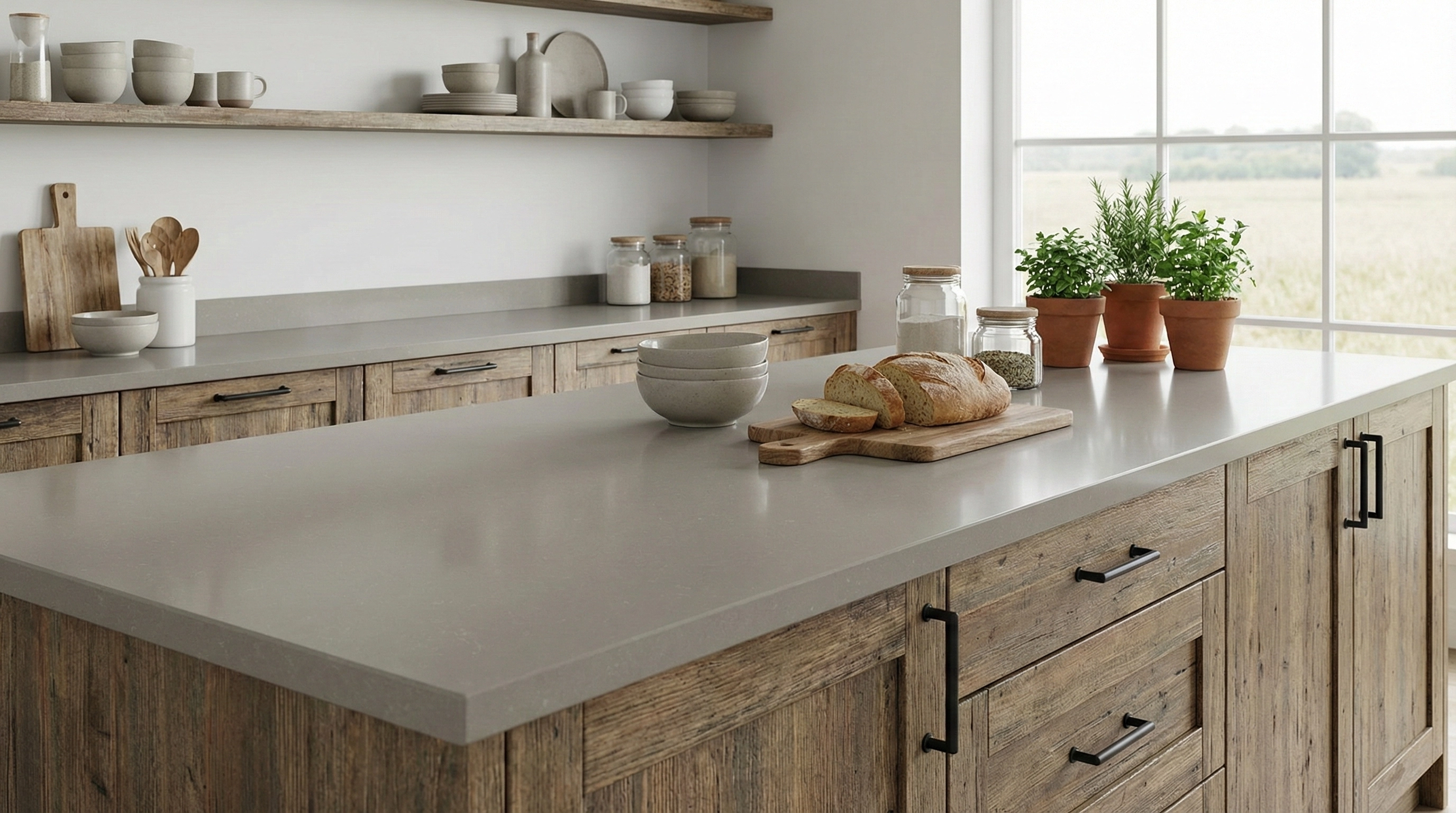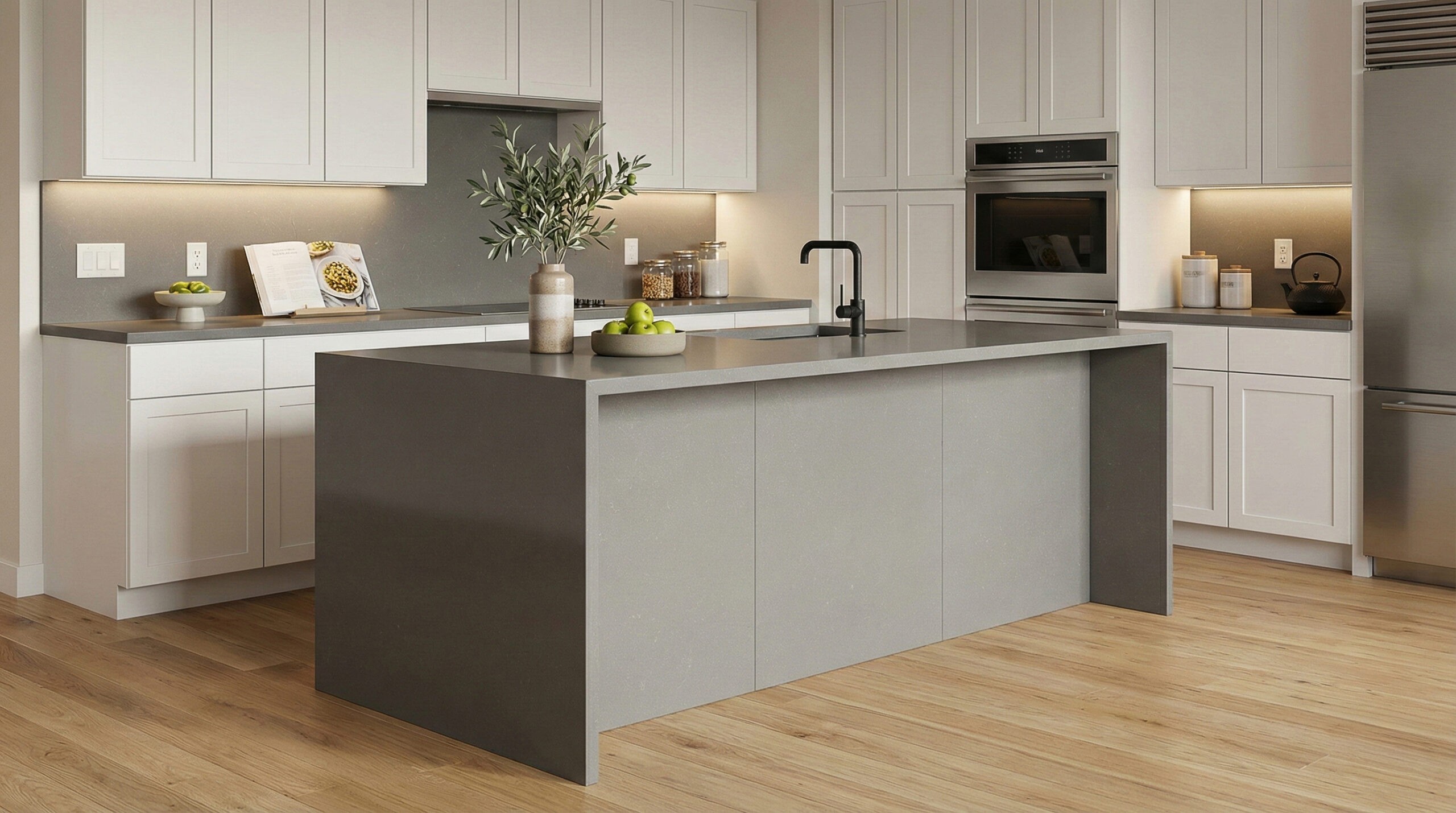 Silver Spur presents a rich, charcoal-gray base with a deep and moody aesthetic. The surface is elegantly disrupted by delicate, thread-like white veining that drifts across the slab in a sparse, organic pattern, reminiscent of the quiet beauty found in natural soapstone or weathered limestone. This subtle, wispy movement adds a layer of sophisticated texture without overpowering the stone’s velvety, solid appearance. Refined yet rugged, Silver Spur is a versatile choice for modern farmhouse, industrial, and contemporary interiors, serving as a grounding element for islands, countertops, and backsplashes where an understated, distinctive character is desired.