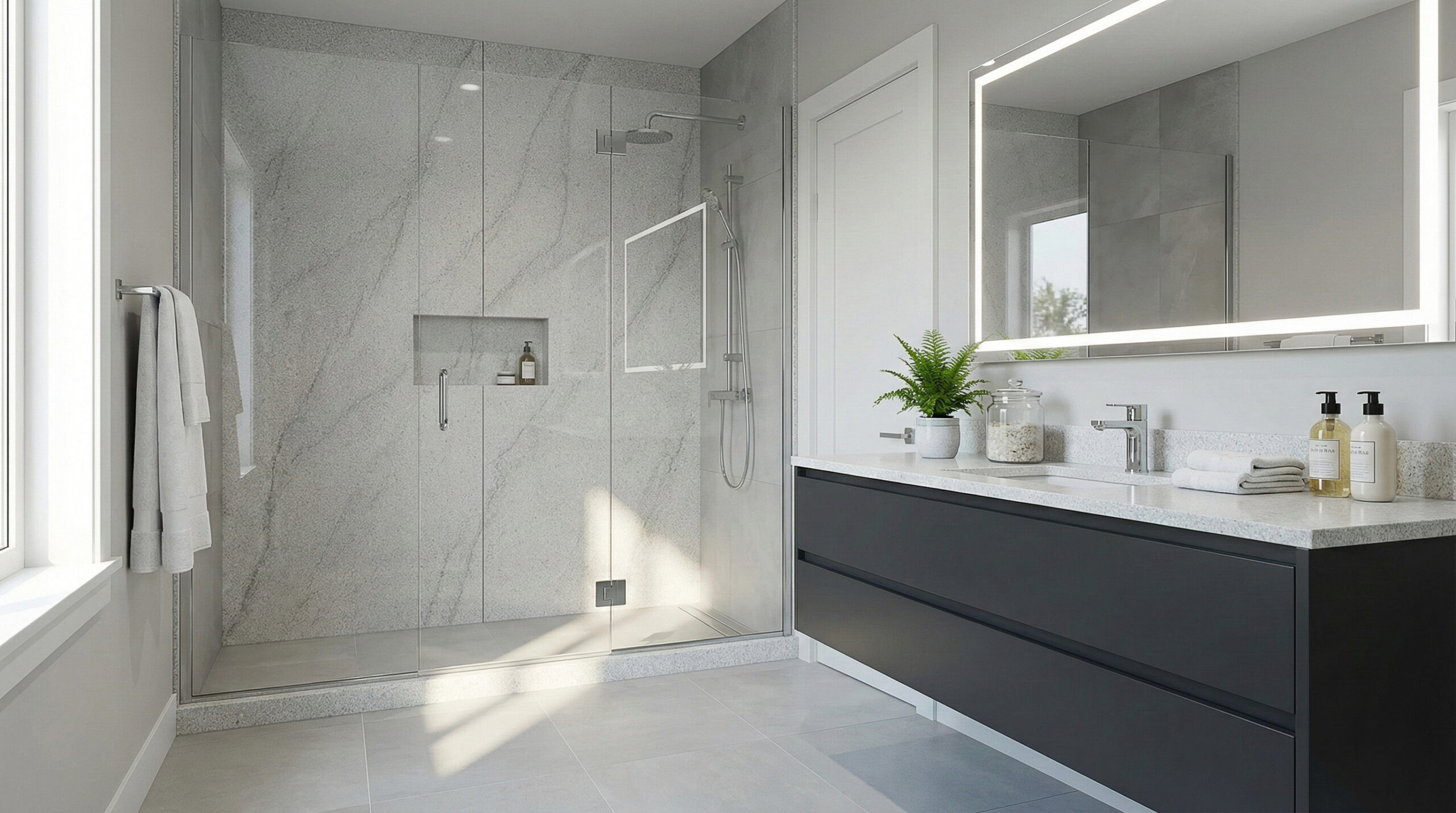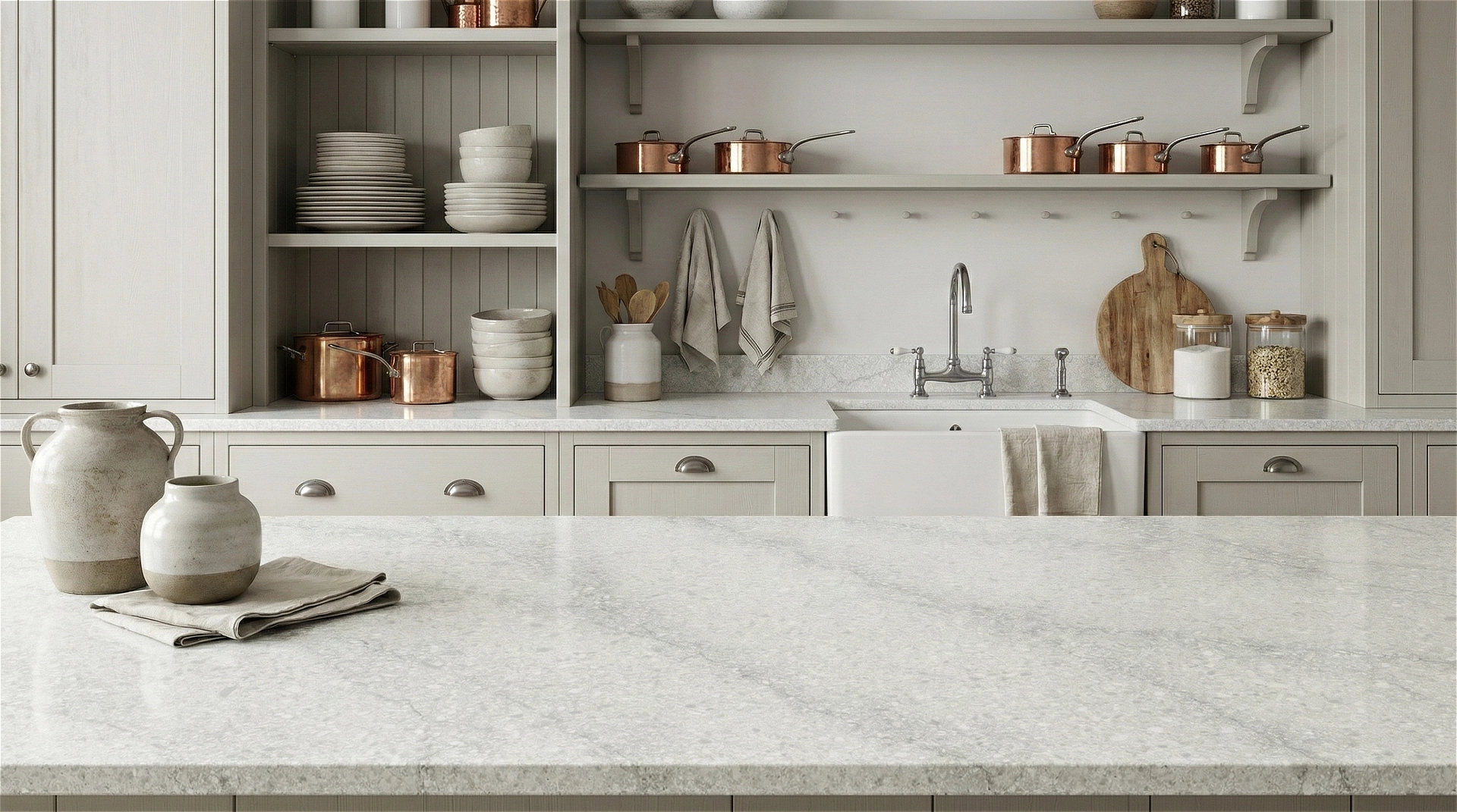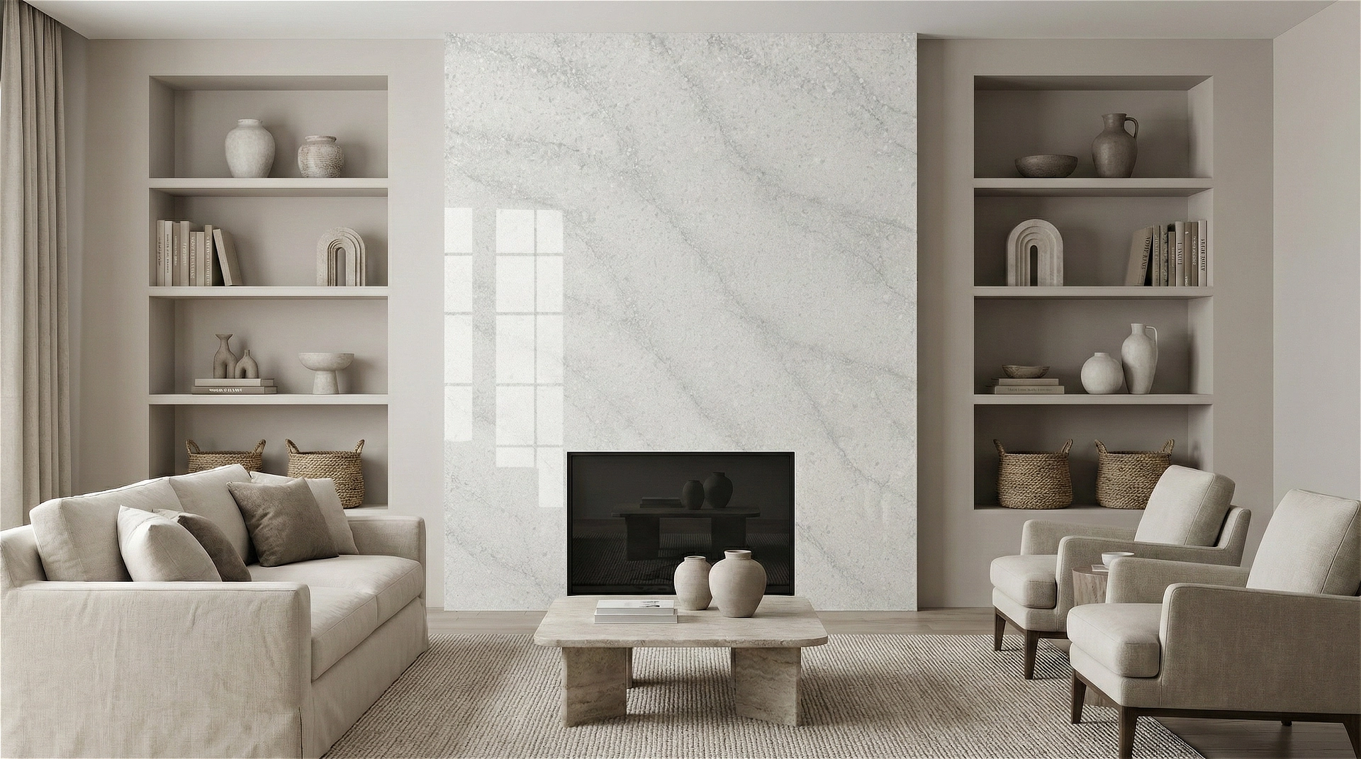 Victoria Marble presents a bright, white base with a unique and dynamic aesthetic. The surface is distinguished by a dense, granular texture composed of fine gray and white particulates, overlaid with sweeping, diagonal waves of soft gray veining. This layered design combines the speckled charm of terrazzo or granite with the fluid movement of traditional marble, creating a look that is both structured and organic. Versatile and engaging, Victoria Marble is an excellent choice for contemporary, transitional, and coastal interiors, offering a lively yet cohesive foundation for countertops, islands, and backsplashes where a blend of durability and visual interest is desired.